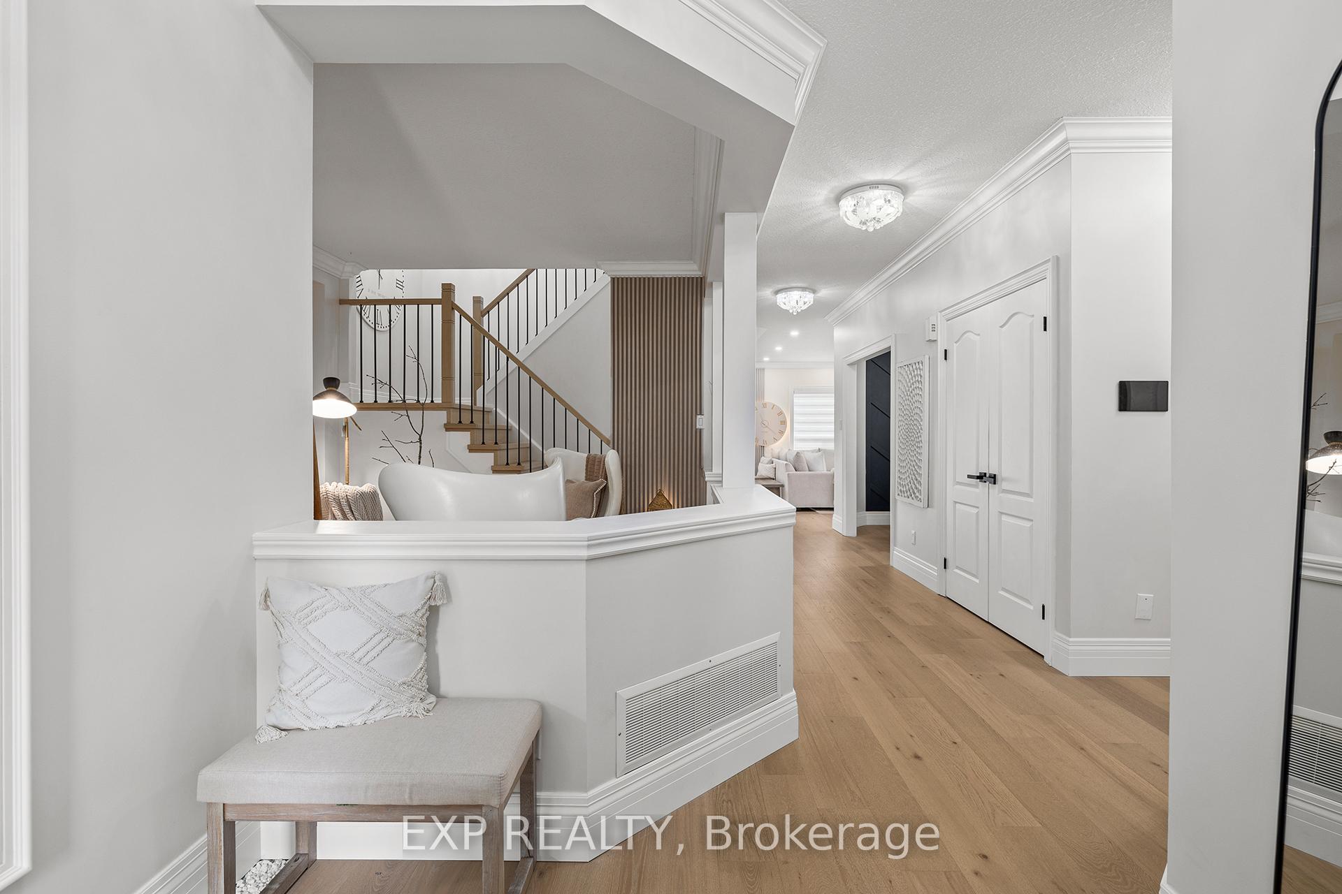 Welcome to 243 Sims Estate Drive, a stunning family home located in one of Kitchener’s most desirable neighbourhoods. This spacious smart home offers 4 bedrooms, 3.5 bathrooms, and a thoughtfully designed layout ideal for modern living. The main floor boasts a bright open-concept family room with a fireplace feature, a formal dining room, and a living room all with warm wood floors. The kitchen is a chef’s delight with granite counters, ceramic flooring, and you can walk out to the newly poured concrete patio (2025), perfect for entertaining and wraps to the front of the house. Additional conveniences include a main floor laundry with quartz counters and access to the garage, plus a stylish 2-piece bath with quartz finishes. Upstairs, the large primary suite offers a 5-piece ensuite with soaking tub, separate shower, and walk-in closet. Three additional generously sized bedrooms feature hardwood flooring and ample closet space, complemented by another full bath with quartz counters. The finished basement extends your living space with an oversized recreation room, 3-piece bathroom, utility room, and extra rooms for storage or hobbies. Outside, enjoy a fully fenced yard, beautiful new concrete driveway (2025), and a peaceful setting close to parks, trails, schools, and everyday amenities. This is a move-in ready home that perfectly combines style, comfort, and functionality.